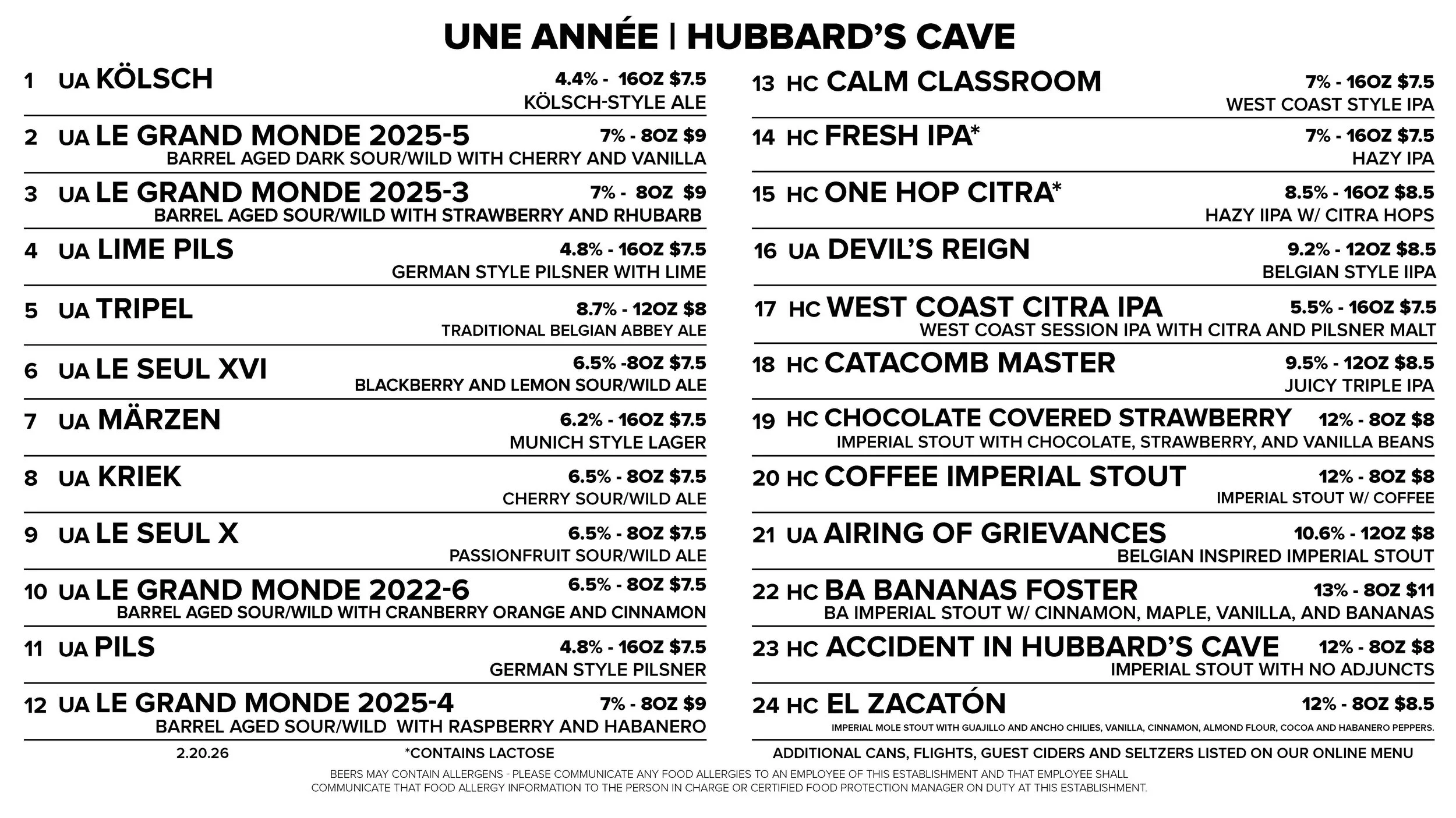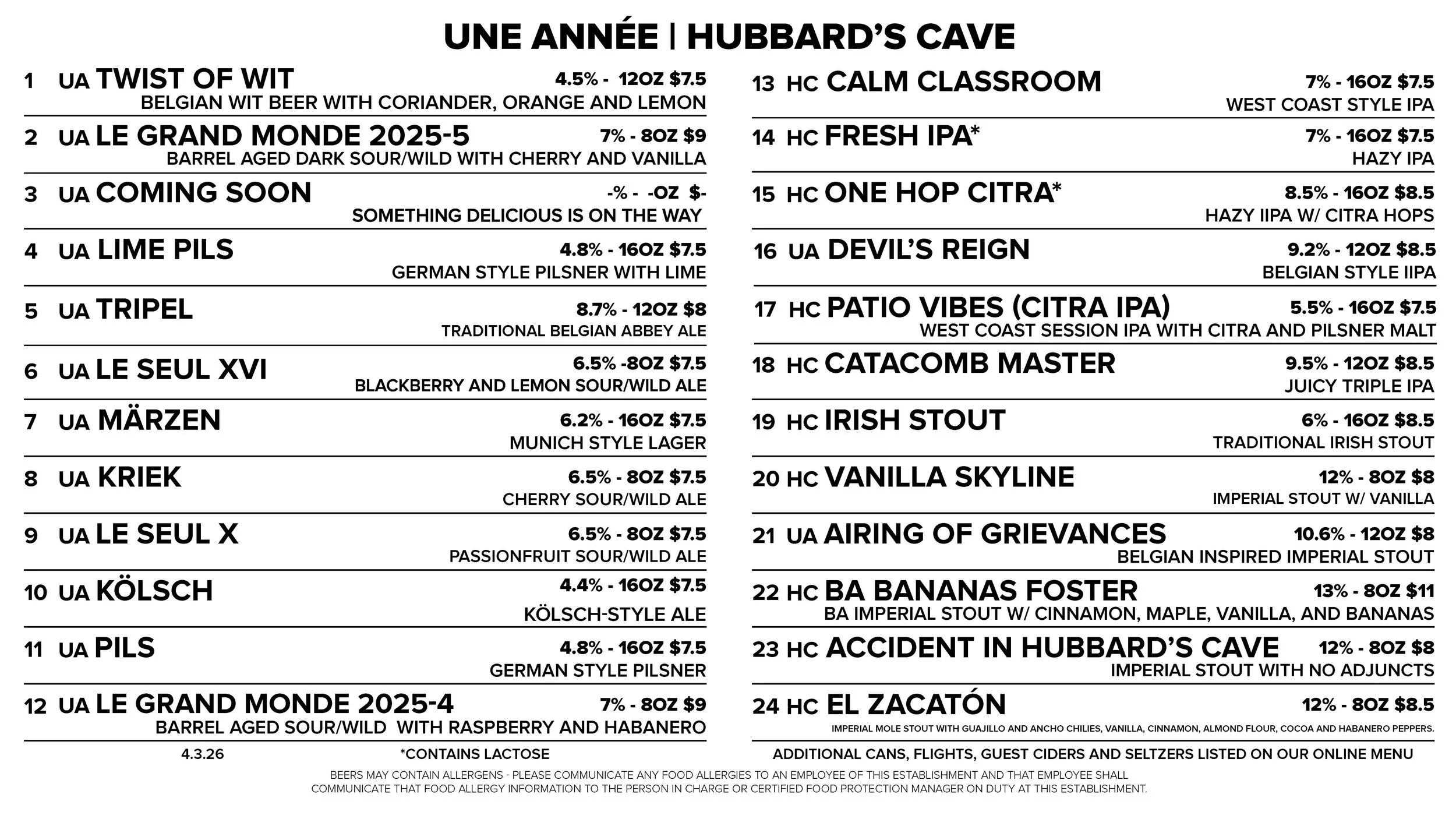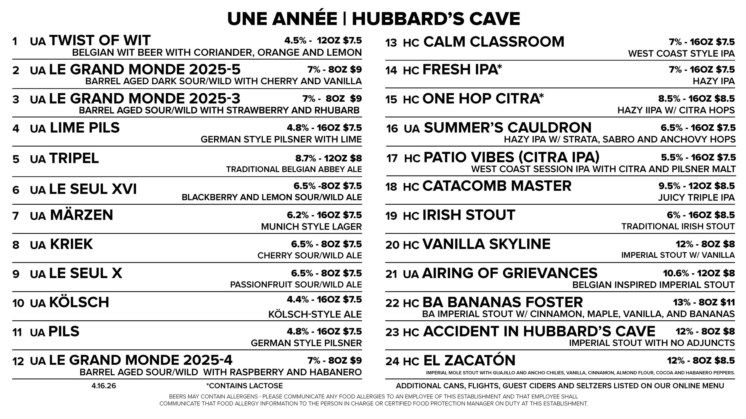 OUR TAPS CHANGE SOMETIMES DAILY. OUR WEBSITE LIST ISN’T ALWAYS ABLE TO KEEP UP. PLEASE NOTE THAT THIS LIST IS NOT ALWAYS REPRESENTATIVE OF WHAT IS CURRENTLY ON TAP.